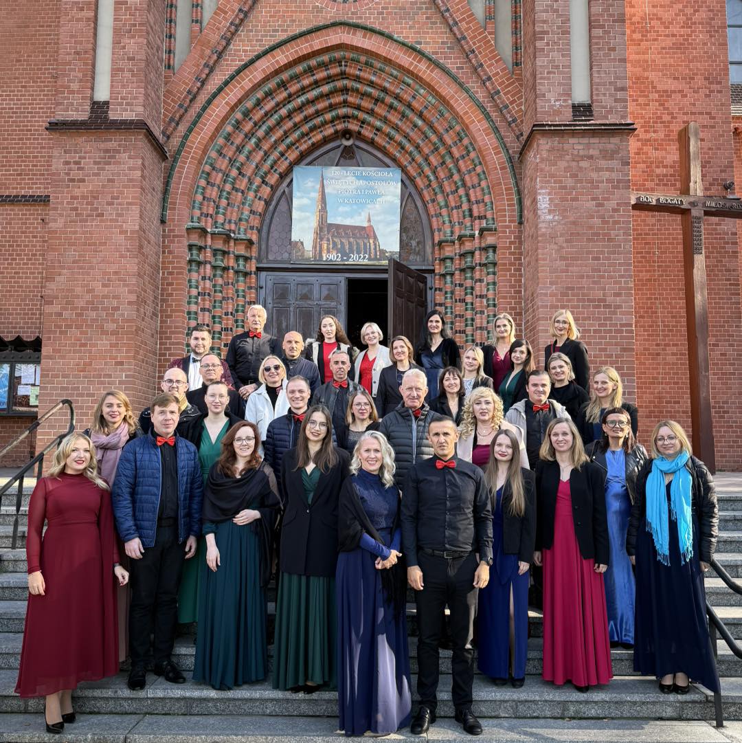 Chór Cantiamo Tutto w Katowicach przed Kościołem Św. Apostołów Piotra i Pawła (jesień 2024).